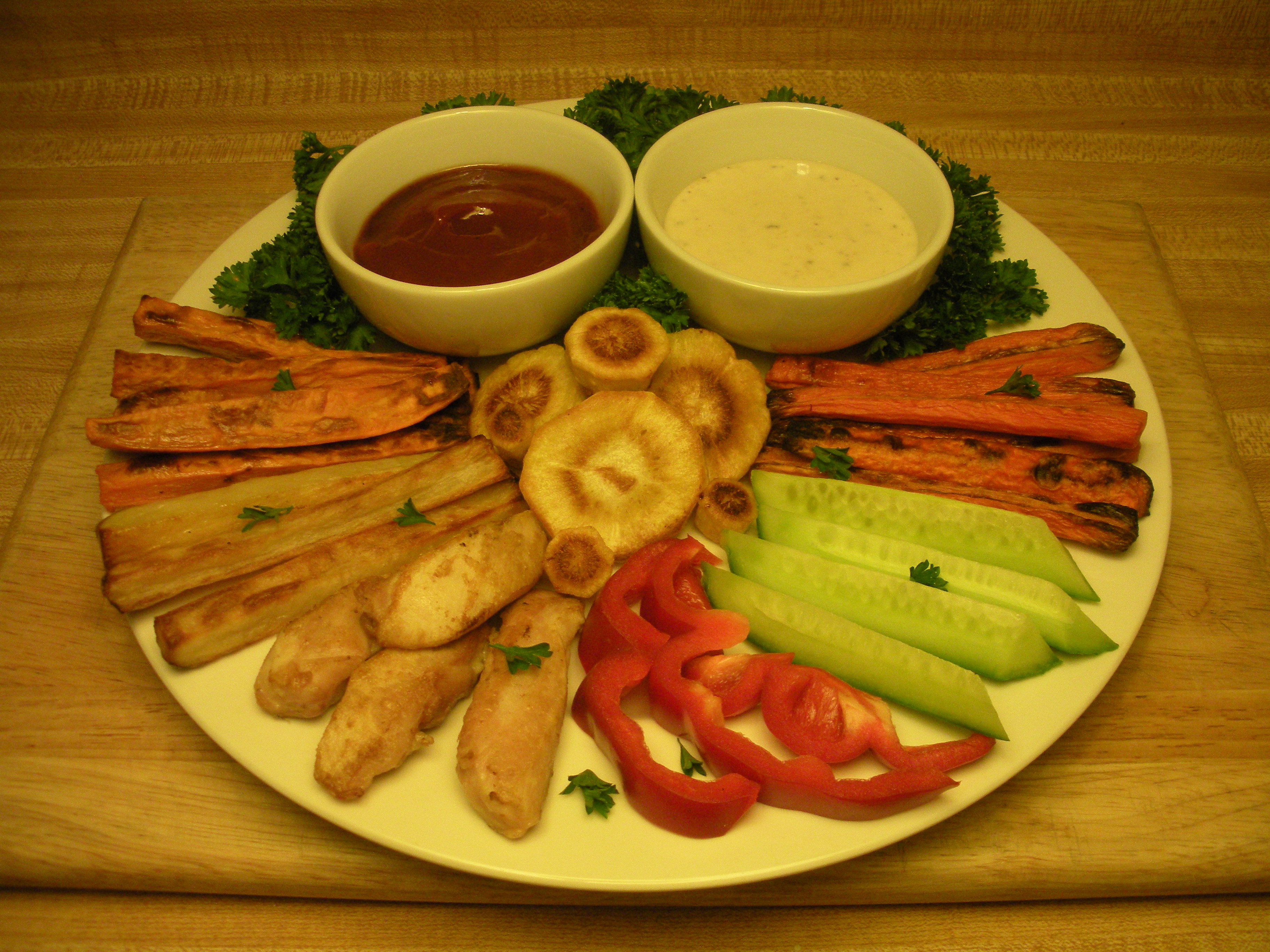 Optional: sauce for dipping, like ketchup, barbecue sauce, balsamic reduction, or plant-based ranch.