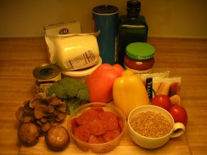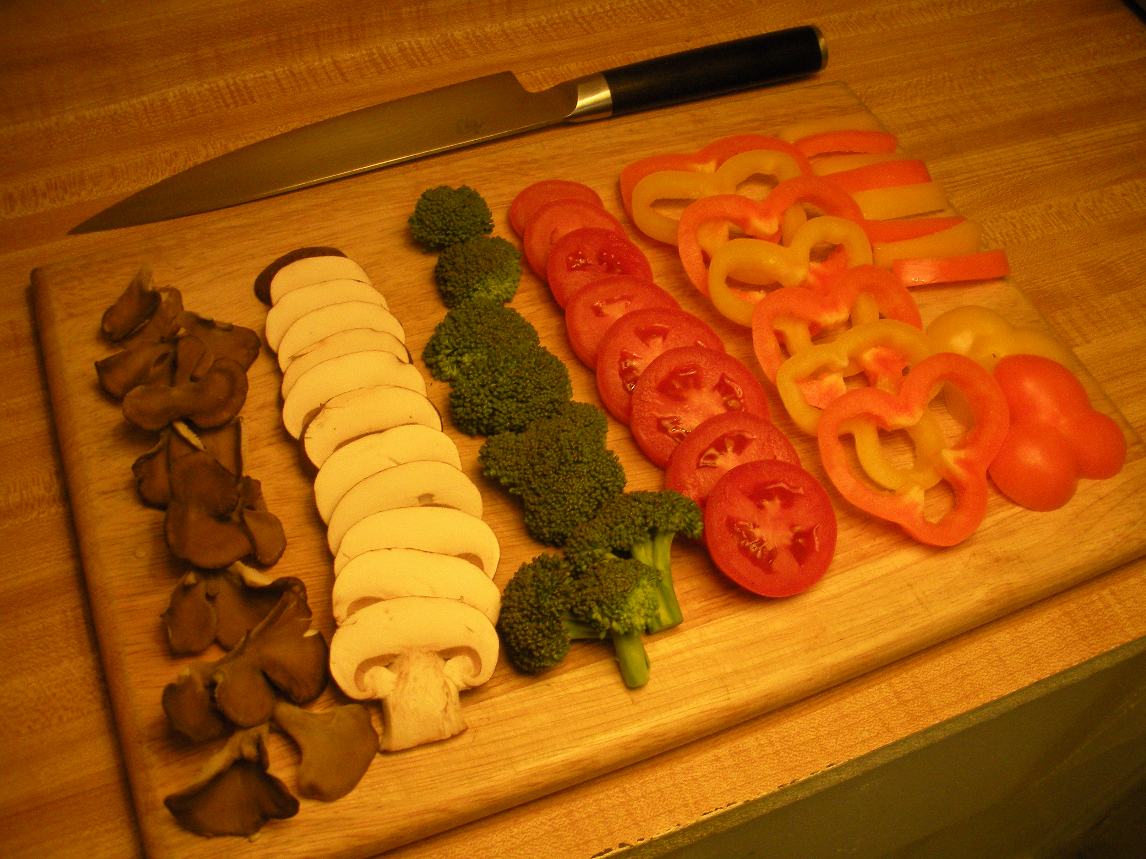 vegetables, cut into bite sized pieces (bell peppers, tomatoes, mushroom, olives, broccoli, etc)