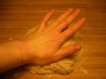 10. Stretch dough into pizza crusts with oiled hands, and place on baking sheets.