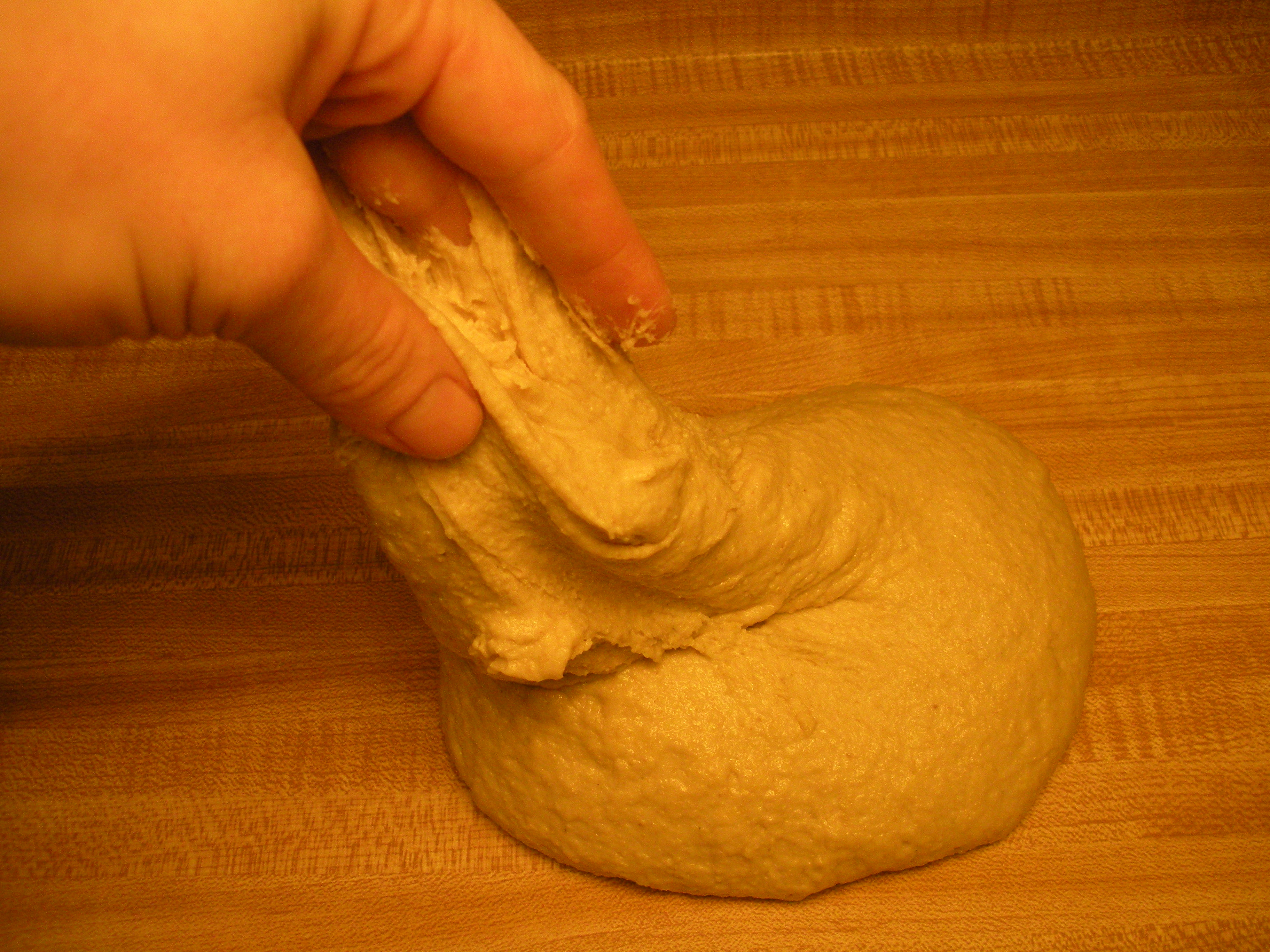 5. Empty dough onto a clean, lightly oiled countertop and knead with oiled hands until smooth and elastic. Dough will still be sticky (as bran has not yet fully absorbed dough moisture).