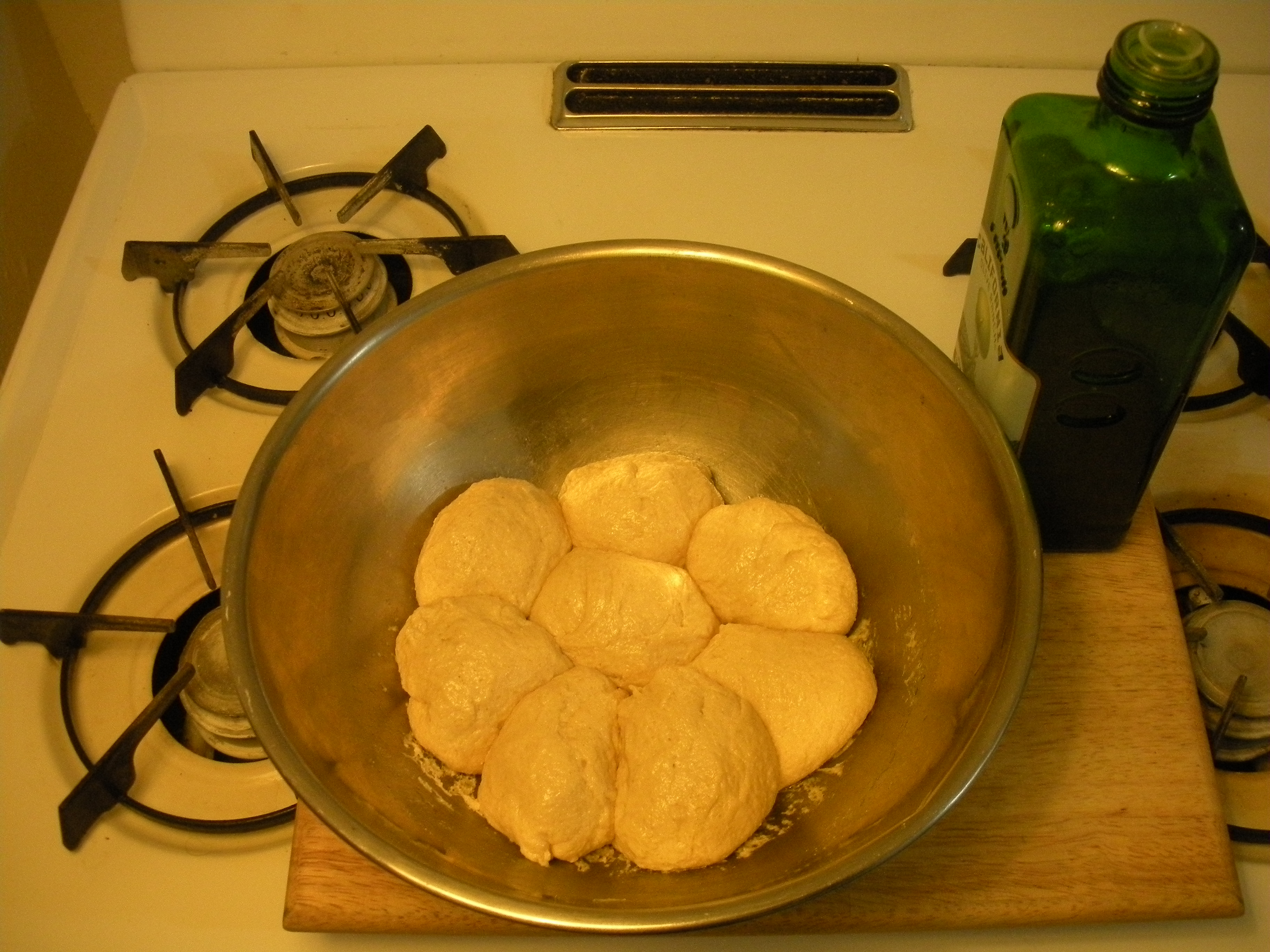 9. For individual pizzas, divide dough into 8 pieces and roll into balls with oiled hands. For large pizzas, divide dough into 2 pieces.