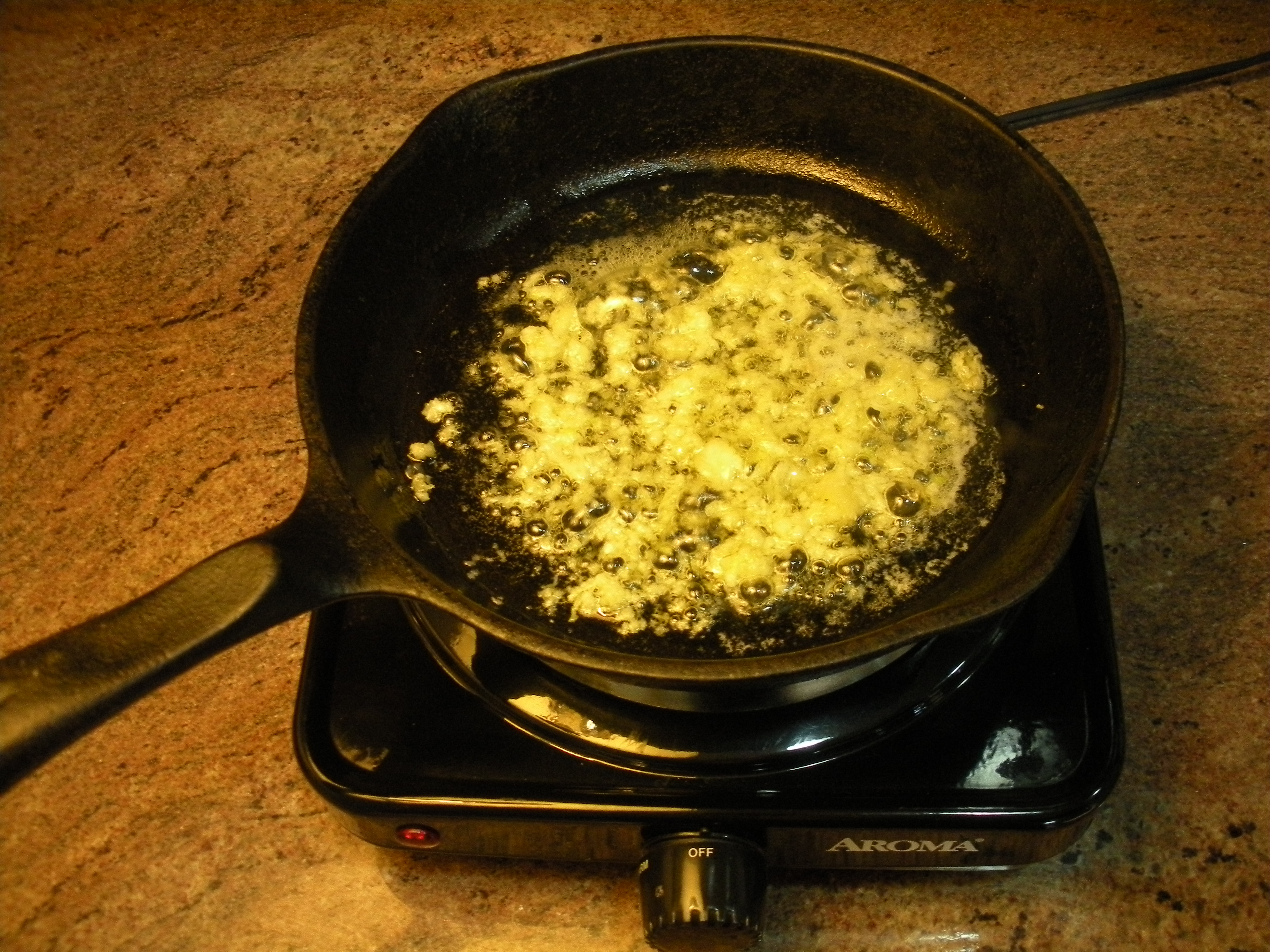3.  Saute garlic, olive oil, and salt on low heat, until garlic is translucent.  Pour into small dish for dipping.
