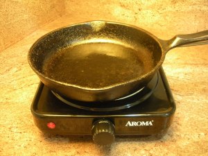 3. Spoon mounds (~2 Tablespoons each) of batter into pan, spreading them to form 3″ fritters.