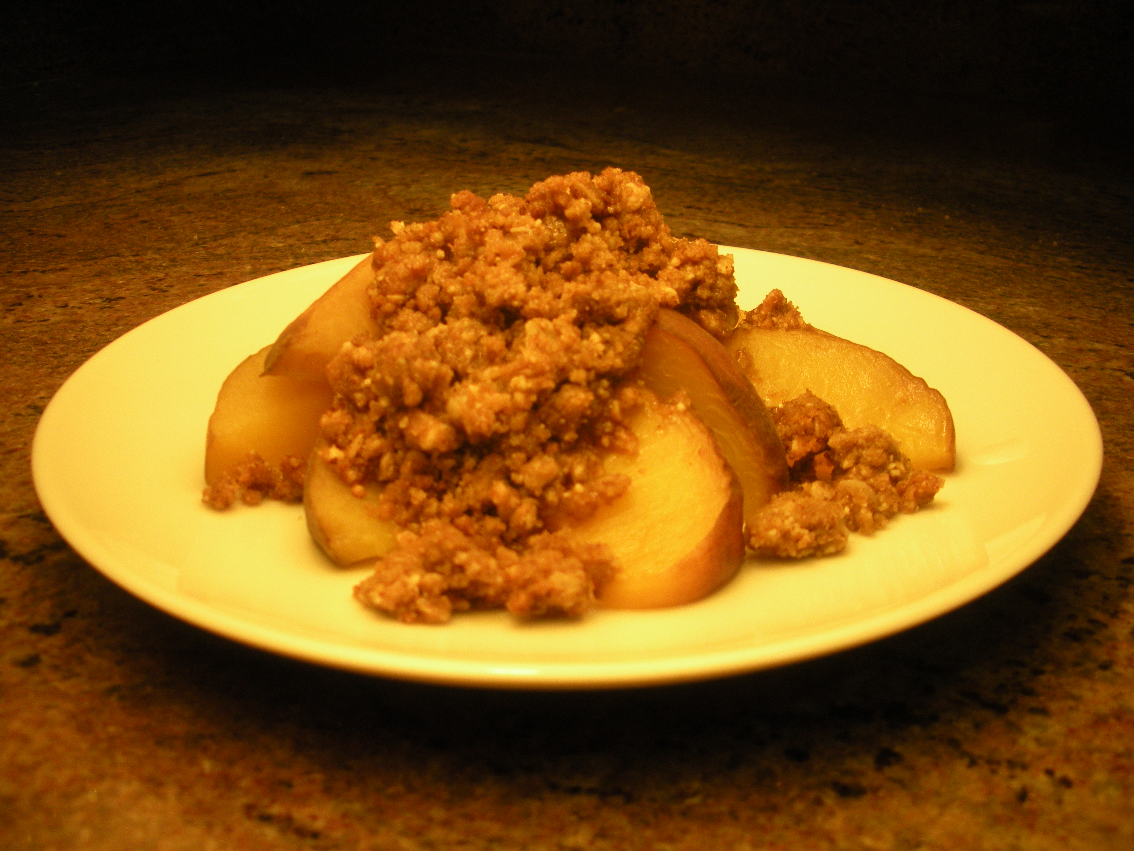 3. Bake 30-60 minutes in 400 degree oven until topping browned, and peaches soft.