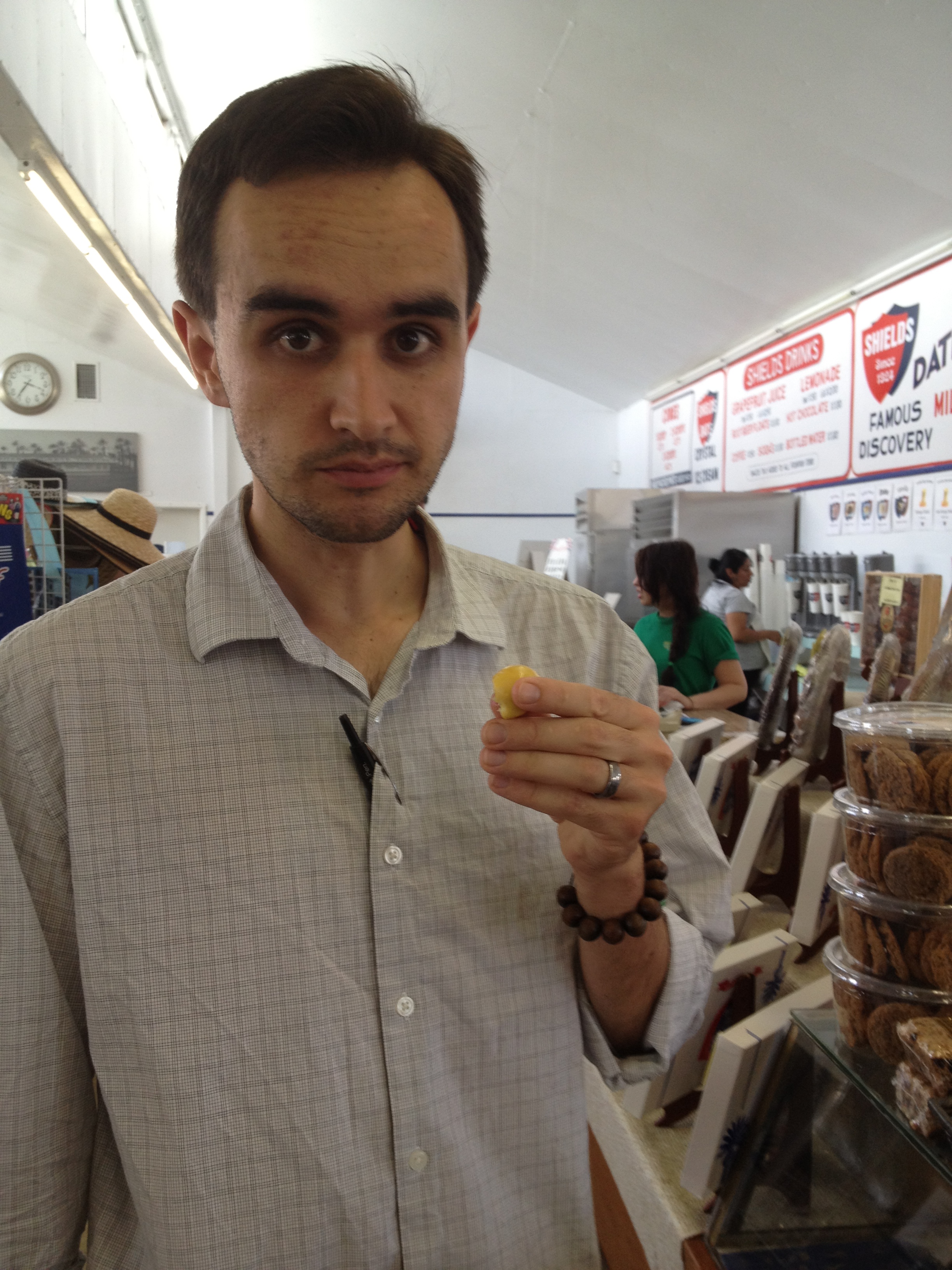 Patrick tastes a Yellow Barhi: