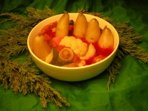 This week’s recipe is for Fingerling Soup du Gore. Fortify one’s family against the sugar blues this All Hallows’ Eve with this horrifyingly hearty soup. Serve a la carte, as a complete meal, or with toast.